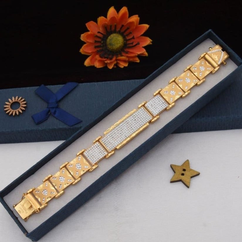 1 Gram Gold Plated with Diamond Antique Design Bracelet for Men – Style C351