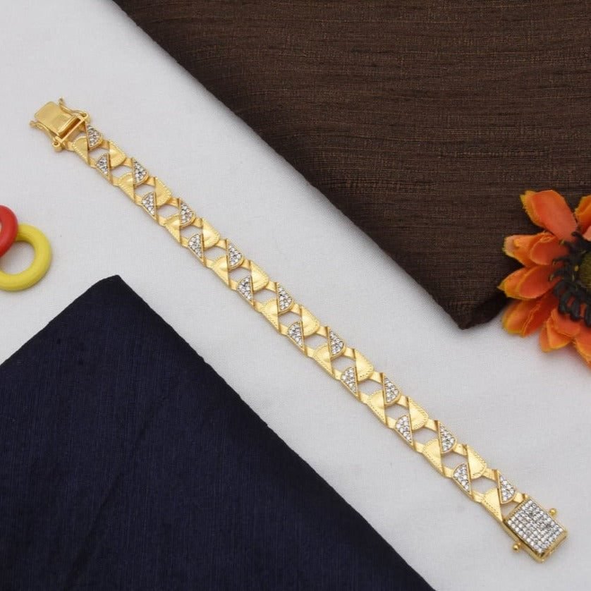 1 Gram Gold Plated with Diamond Sophisticated Design Bracelet for Men – Style C933