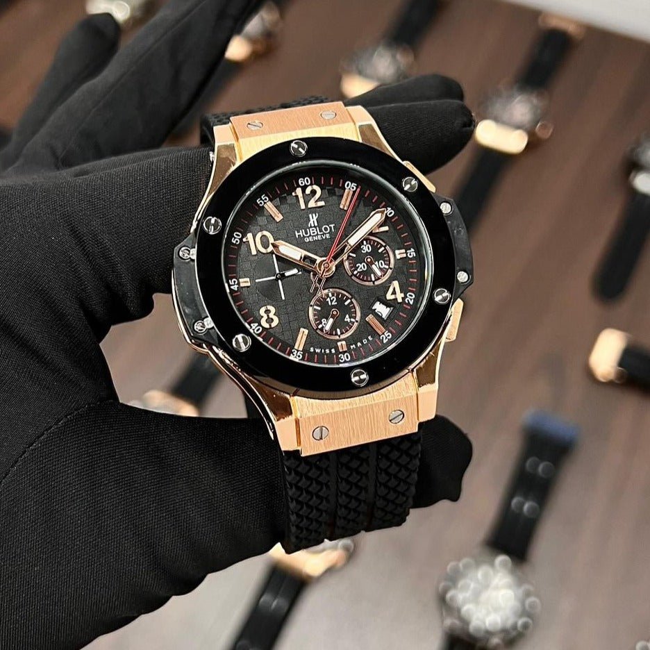 Introducing the remarkable Big Bang 5 Hand timepiece, boasting a sleek all-gloss finish and an iconic strap collection that brings the art of fusion and luxury to your wrist, elevating you to the status of a king.