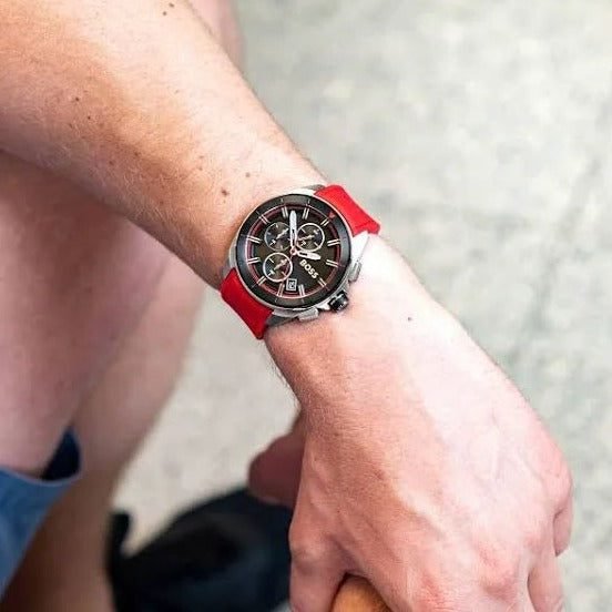 Experience the best quality and a striking red look with the all-new 1513959 Volane Chronograph Watch for men. Featuring a black dial and sports chronograph, this timepiece is sure to elevate your style game effortlessly.