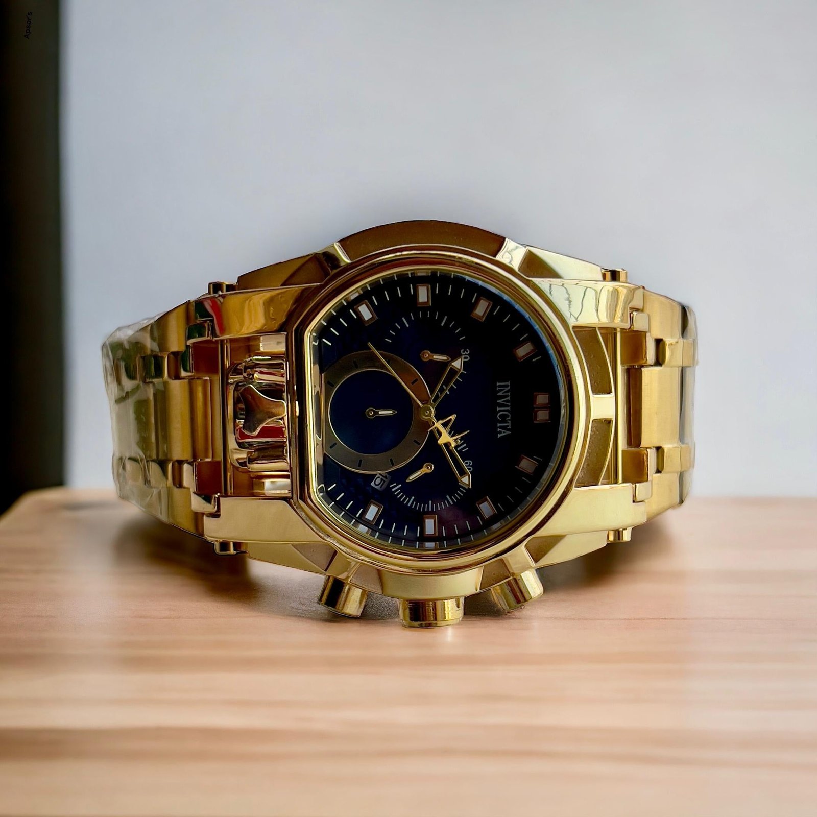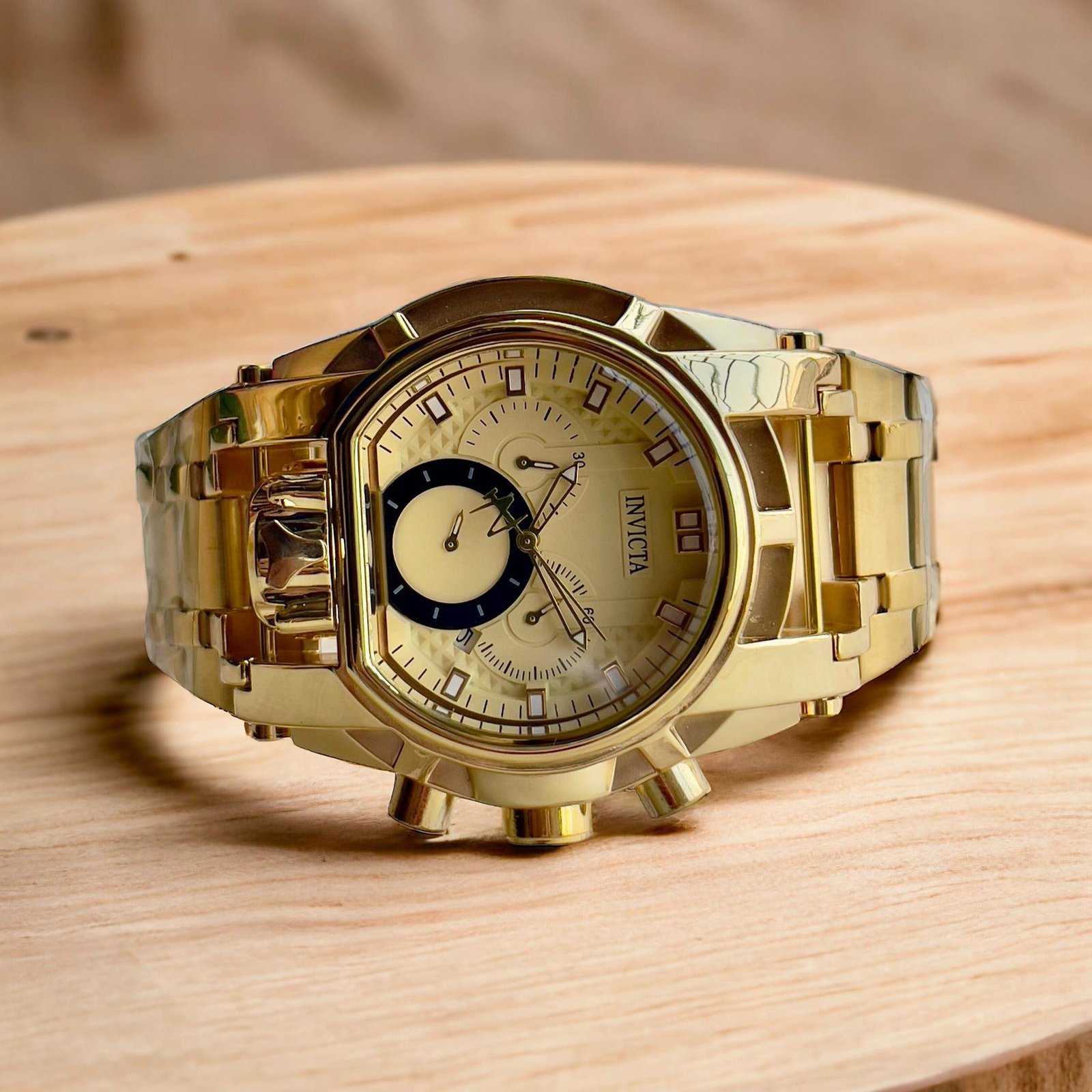 Introducing The Bolt, a quartz chronograph watch designed exclusively for men. This timepiece goes beyond being a mere accessory; it’s a functional work of art. All chronographs are in working order, including a date window, stopwatch chrono, microsecond chrono, and a 24-hour chrono. The double pressing lock ensures both security and style, while the big dial and heavy metal bracelet add a touch of boldness. The back is embossed with full branding, showcasing the attention to detail.