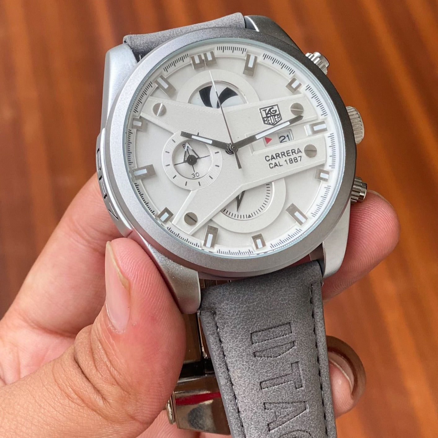 - Grey leather strap: Enjoy the comfort and style of the Grey leather strap, adding a touch of sophistication to your wrist.