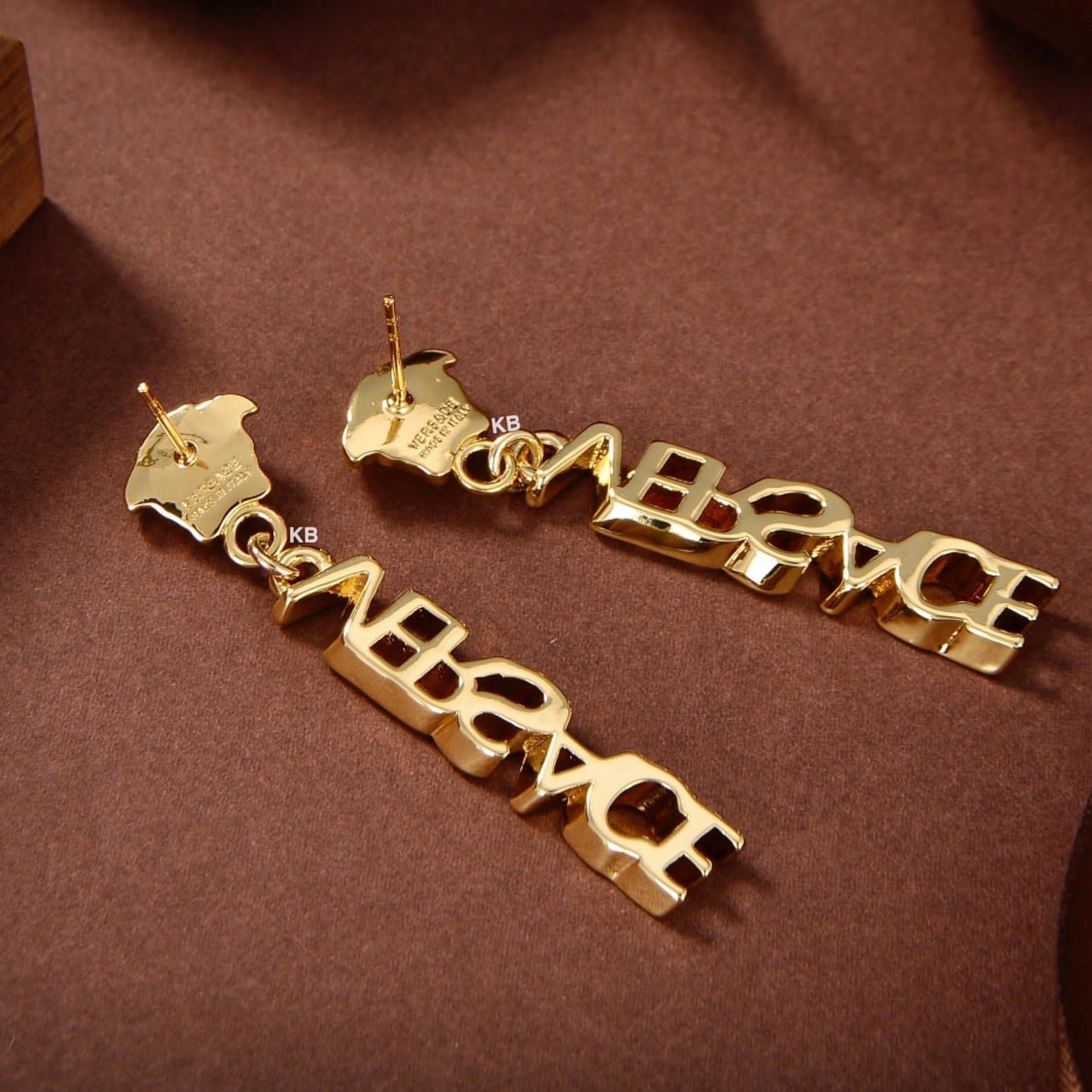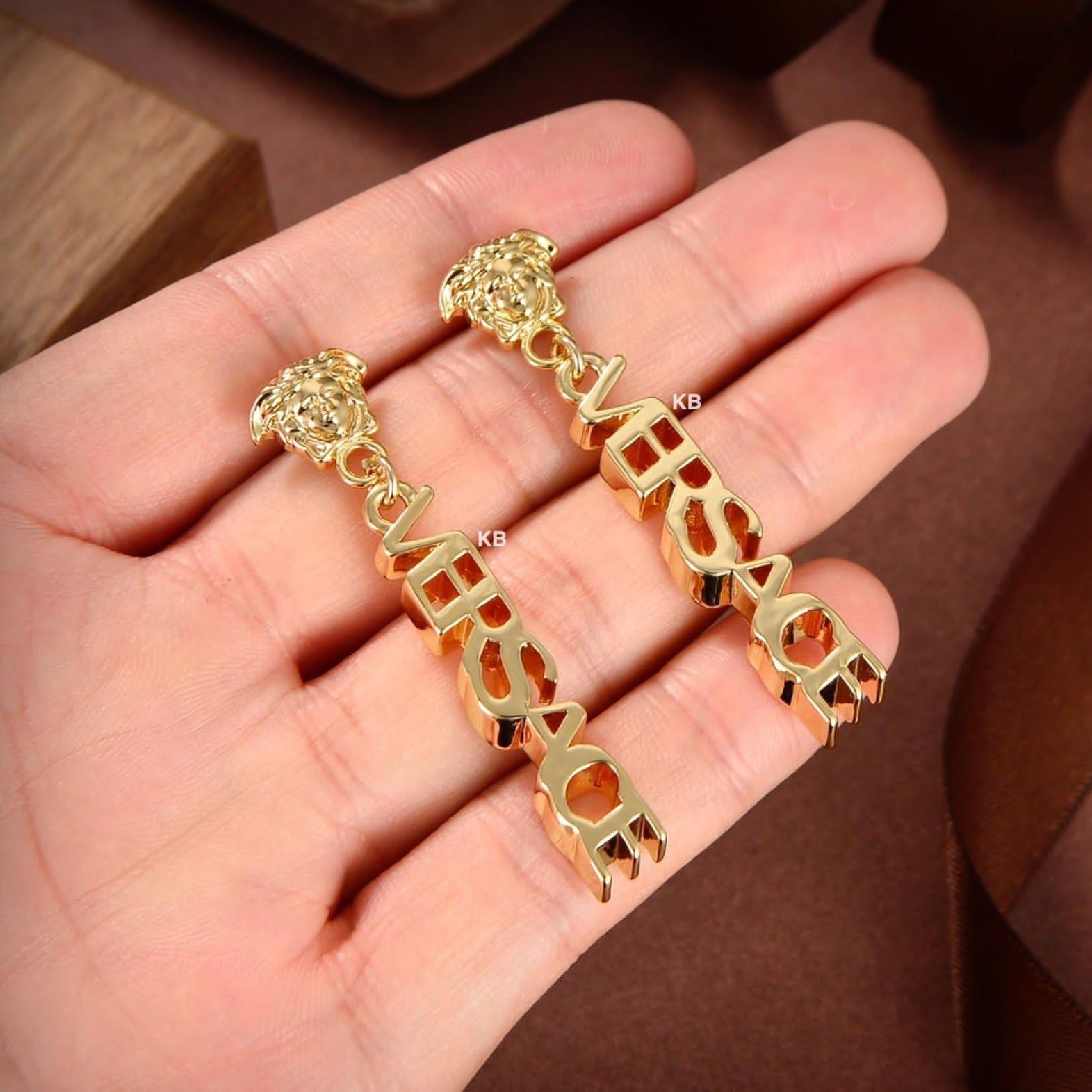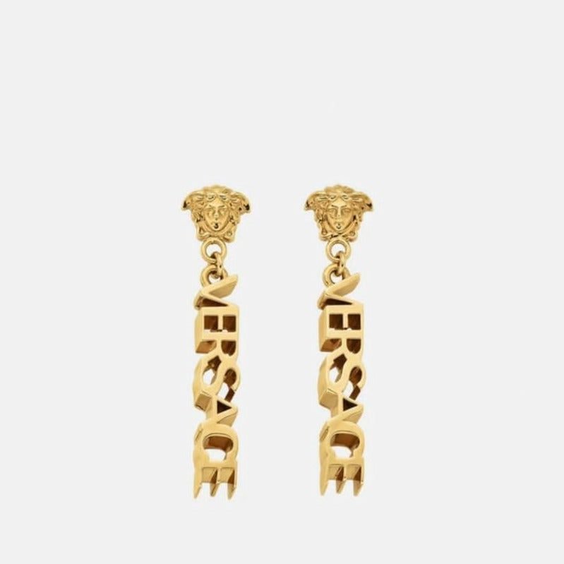 Experience luxury like never before with our Logo Drop Earrings, meticulously crafted from high-quality brass and finished in Versace Gold. Each detail is carefully sculpted to perfection, ensuring durability and longevity. With these earrings, you can indulge in luxury without compromising on quality.
