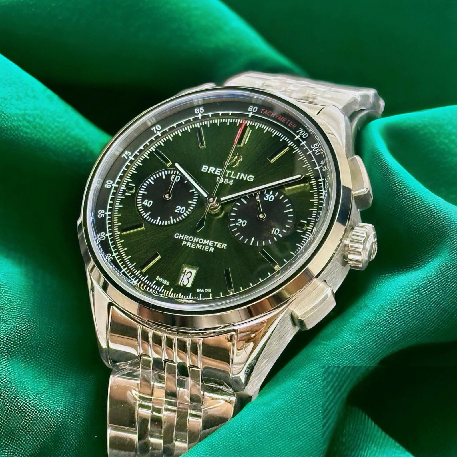 Dive into the world of luxury with the Breitling Premier B01 42mm Green Sunray Dial Chronograph Watch. A symbol of precision and elegance, this watch is not just a timekeeper but a statement of style and functionality.