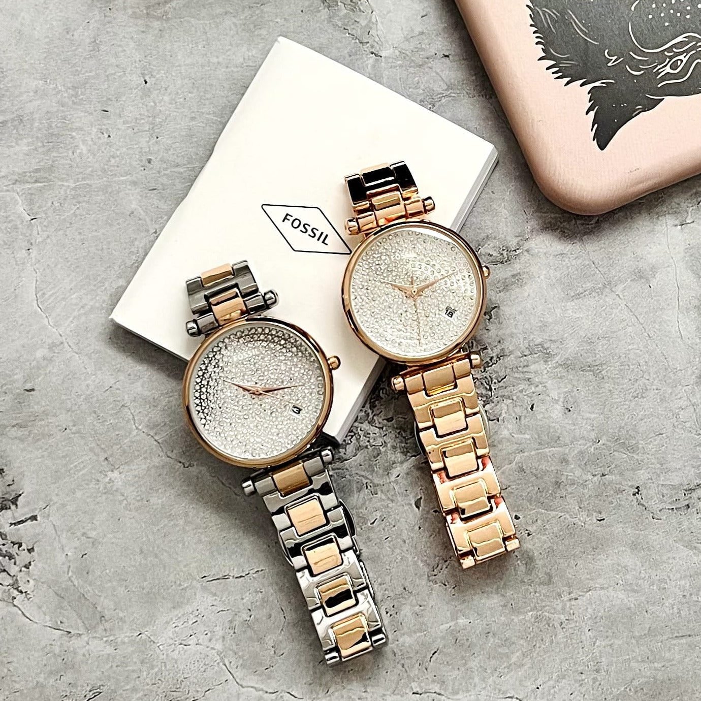 – The Rosegold, Rose Two-Tone & Sliver band Fossil strap adds a touch of elegance.