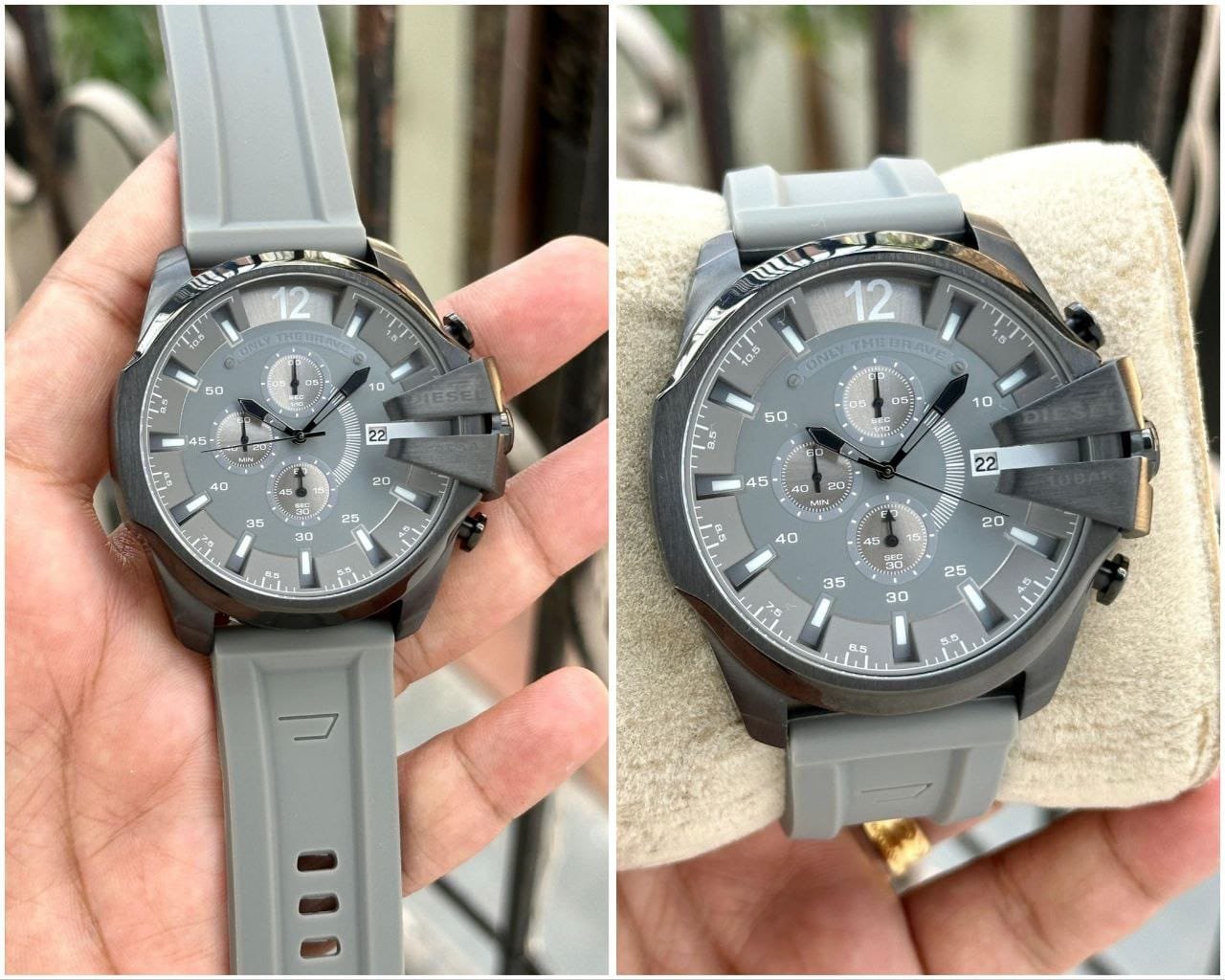 ✅ *Commanding and stylish, this New Diesel 10BAR Mega Chief watch features a grey chronograph dial with an Only The Brave Tag and Fiber Strap* ✅