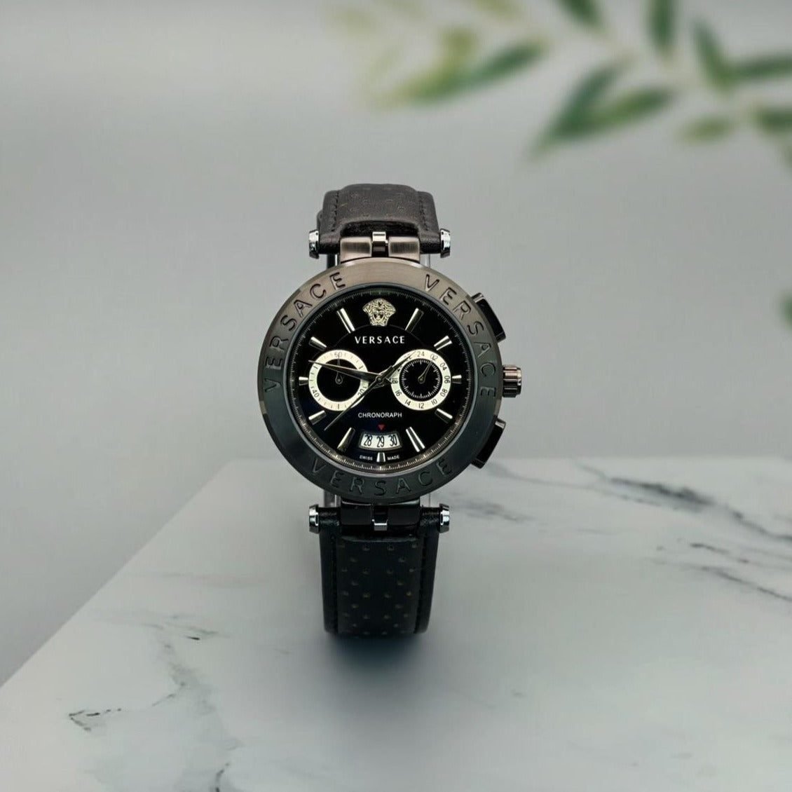 Model: Vr Quality: 7a Gender: Men’s Band: Black Dial: Black Movement: Quartz Case Diameter: 42mm Case Thickness: 10mm Glass: Sapphire glass Clasp: Fold over clasp All chronograph functions are working perfectly.