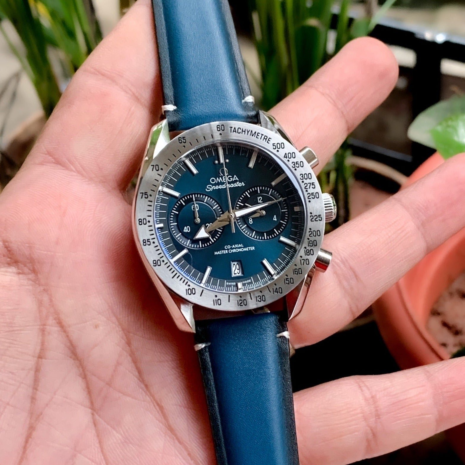 - Pure Leather Blue Strap with Omega Original Lock