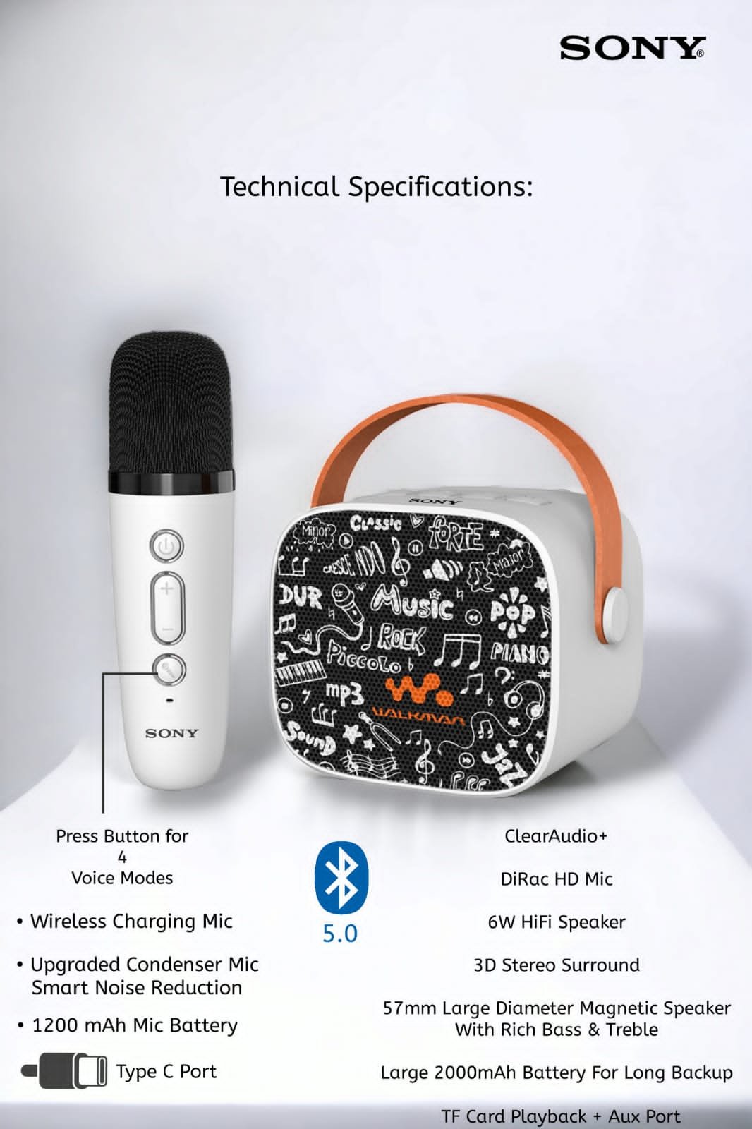 - The 1200mAh Mic Battery ensures you can sing for hours.
